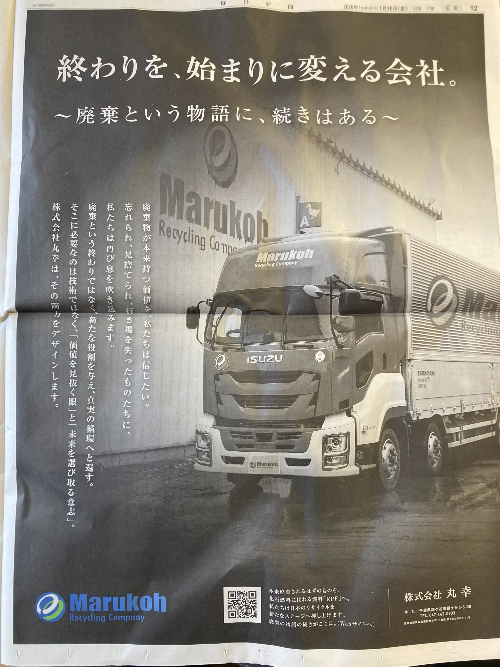 【メディア掲載のご報告】 2026年1月16日の毎日新聞 千葉県版の朝刊一面に、弊社の広告が掲載されました。